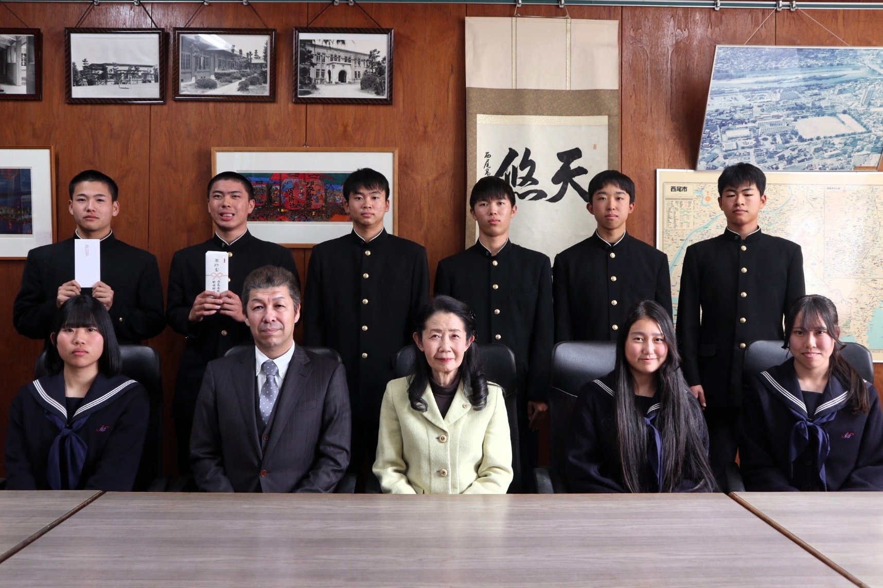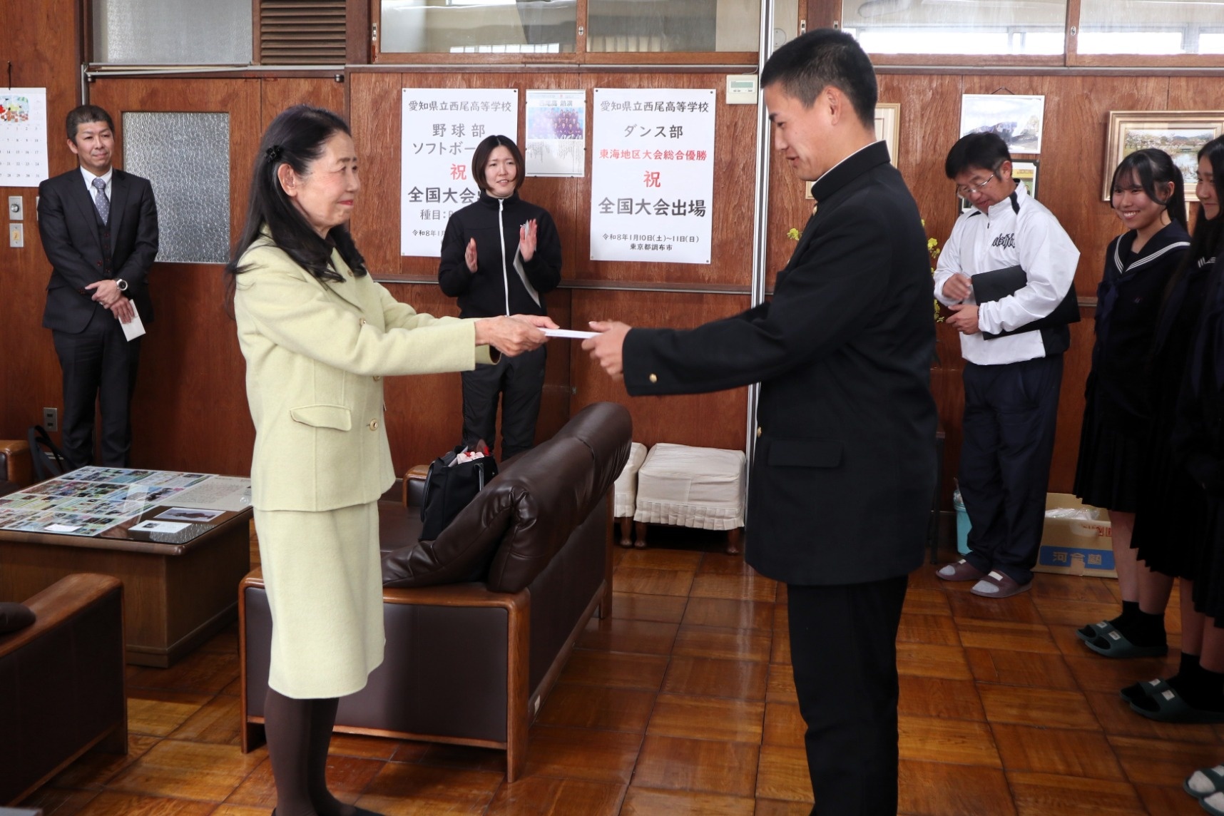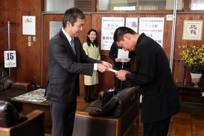 第3回 Baseball5 日本選手権 ユースの部へ出場権を獲得した野球部・ソフトボール部合同チームに、1月15日(木)に同窓会と野球部OB会から激励費の贈呈が行われました。